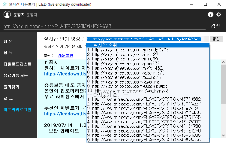 실시간 인기영상을 제공합니다. (서버에 부담이 많아 제한적으로 제공할 예정입니다.)