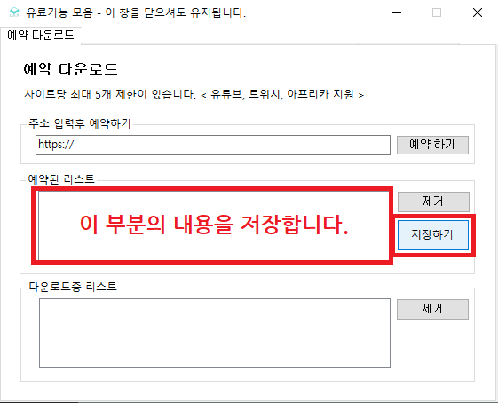 예약 다운로드 목록 저장 기능
