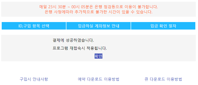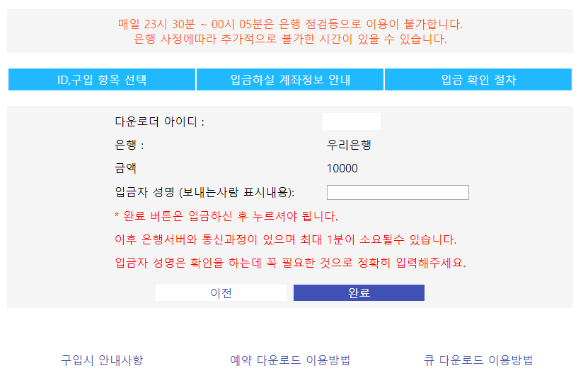입금자명을 입력해주시면 서버에서 확인을 합니다.