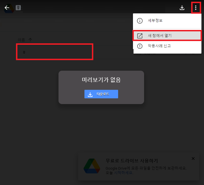 폴더 주소만 있다면? 폴더 주소로 드라이브를 연 이후 파일을 클릭하여 파일 미리보기를 열어줍니다.