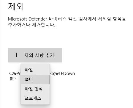 4. 프로그램 설치 폴더를 제외설정할 수 있습니다.